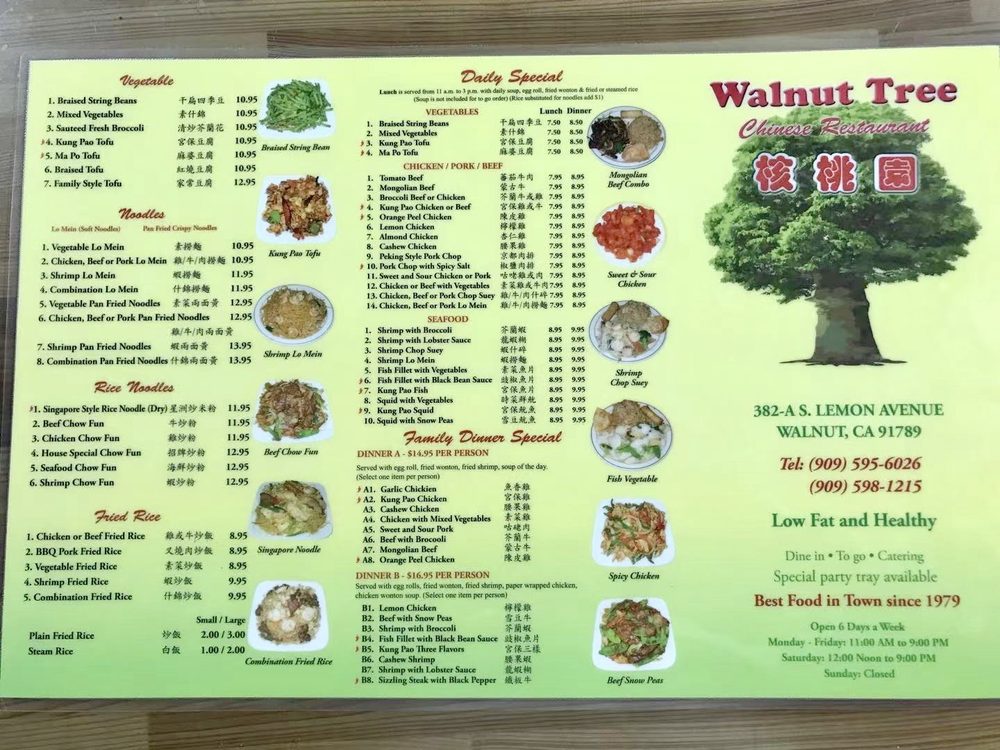 Welcome to the Walnut Tree Restaurant, a delightful haven for lovers of authentic Chinese cuisine nestled in Walnut, CA. Specializing in noodles and soups, this casual dining spot offers an extensive menu that caters to every palate. From the irresistible Kung Pao Chicken to the savory Sweet and Sour Pork, each dish bursts with flavor and generous portions.